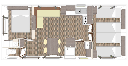 Un plus grand mobilhome adapté aux grandes familles avec ces trois chambres et le convertible dans le salon il peut accueillir jusqu’à 8 personnes. De quoi passer des vacances inoubliables avec toute la famille ! Vous avez bien sûr, comme dans tous nos mobilhomes, une télé dans le salon, une cuisine équipée, une salle de bain avec toilette séparé.